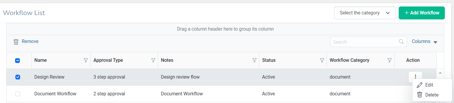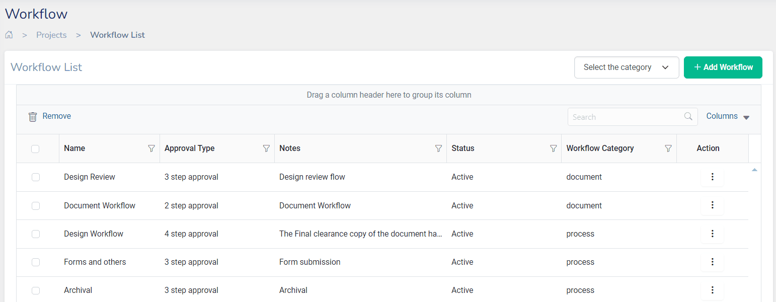 Note: Before creating any workflow, the workflow should be assigned to any one of the categories viz., Process or Document.