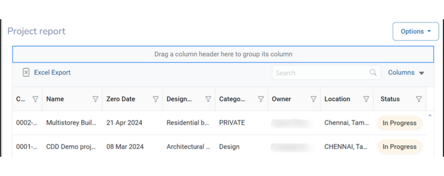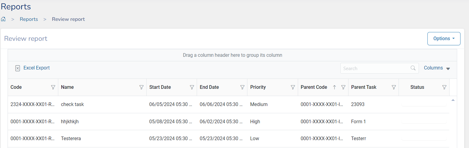 Click on either or the Options tool to download the report as an Excel file