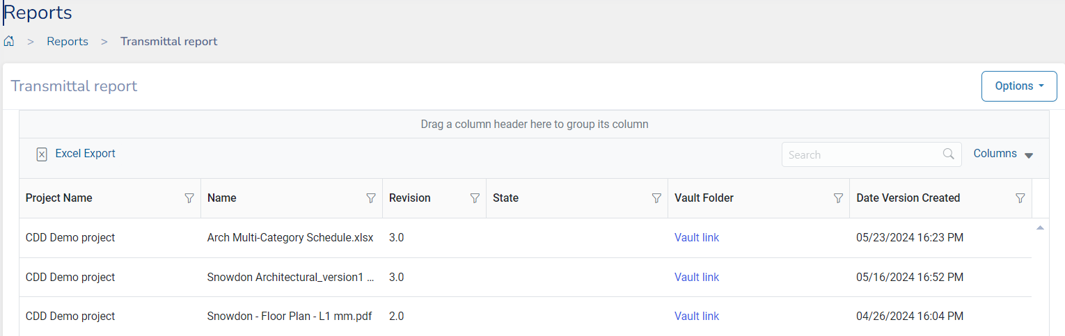 Transmittals Report