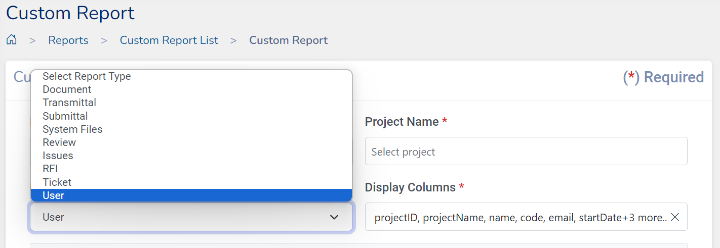 Custom Report tool lets you create customized reports to generate data relevant to your project. Custom Report can be accessed from the reports list