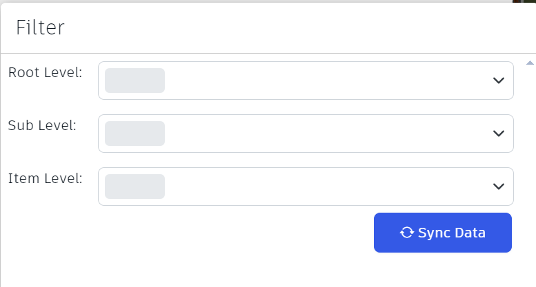 Items can be filtered by root level, Sublevel and item level by selecting from the drop-down menu.