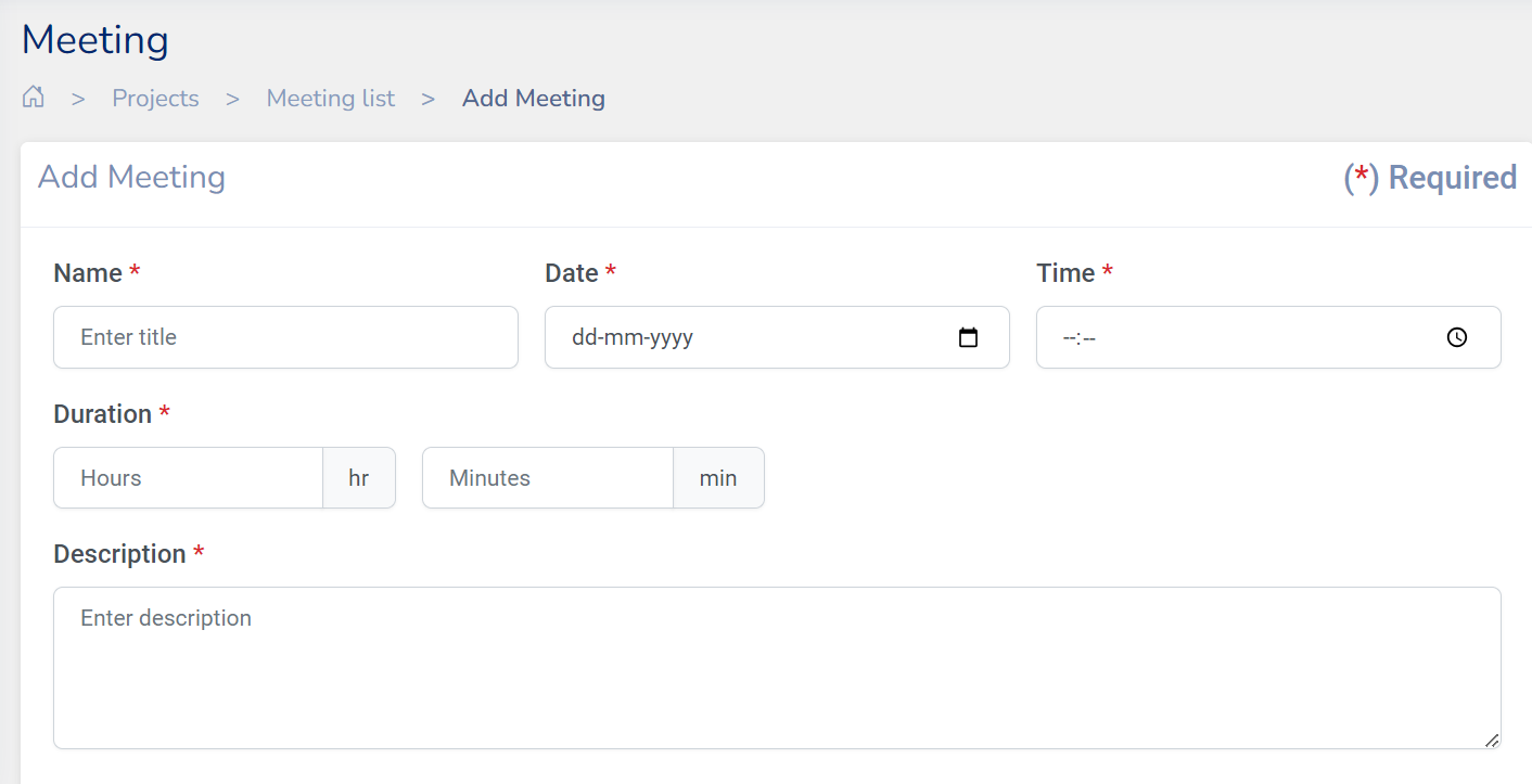 o Description: Enter the meeting description like the agenda of the meeting or paste links for virtual meetings