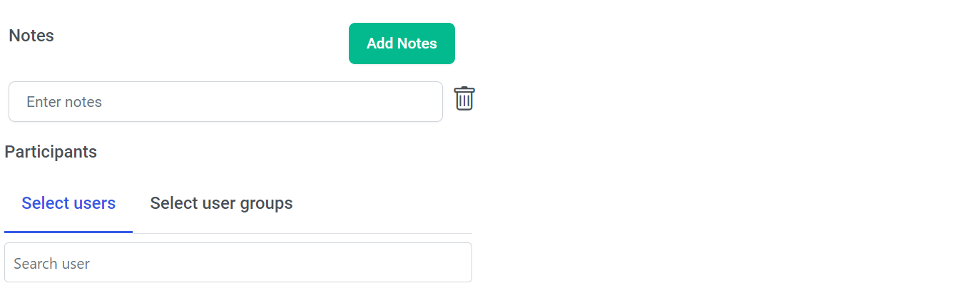o Participants: Enter the meeting Attendees by searching from Select Users or Select User Groups pertaining to the projects
